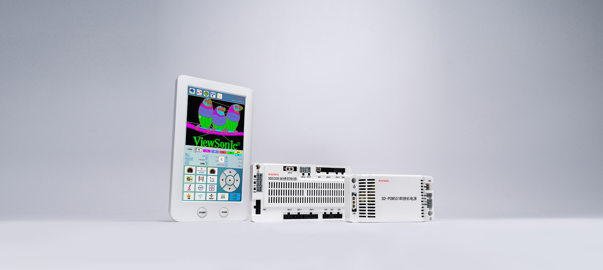 SD系列單頭刺繡電控是在主控板上高度集成了刺繡所需的全部機(jī)械驅(qū)動部件,實(shí)現(xiàn)了主控、驅(qū)動、電源的全面整合。由于其體積小、安裝方便,不僅可用于繡花廠的打樣,還可以用于普通店面做一些量少個性化要求高的刺繡加工。產(chǎn)品機(jī)型采用基于先進(jìn)的嵌入式計(jì)算機(jī)軟硬件系統(tǒng)架構(gòu),配備全新明亮的TFT觸摸液晶屏,內(nèi)嵌全新設(shè)計(jì)的操作交互界面,安裝于高度集成的一體式控制箱。與機(jī)械廠配合實(shí)現(xiàn)了主控驅(qū)動的全面整合,使整機(jī)的成本降低,從而激發(fā)更廣泛的市場應(yīng)用。